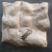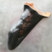 Part of the back of a female, with a tattoo based on the book of Kushiëls Dart, on a metal plate